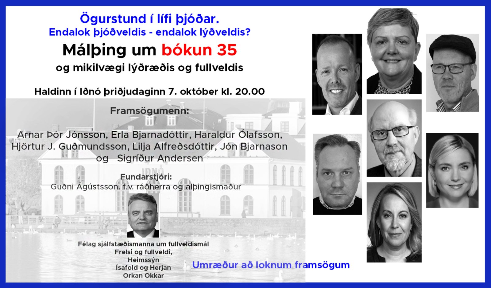 Barátta gegn frumvarpinu um bókun 35 og auknum áhrifum ESB hérlendis er ekki aðeins lagaleg, heldur er hún í reynd einnig söguleg (hver erum við?) og siðferðileg (hvað ber okkur að verja?). Baráttan snýst ekki aðeins um að verja lýðræðislega stjórnarhætti með öllu sem í því felst (þ.m..t. rétti fólks til að tjá sig og gagnrýna stjórnvöld), heldur um hvað það þýðir að vera frjáls manneskja í frjálsu samfélagi, þar sem mönnum leyfist að leita sannleikans og bera ábyrgð á sjálfum sér, samfélagi sínu og framtíð barnanna sinna.